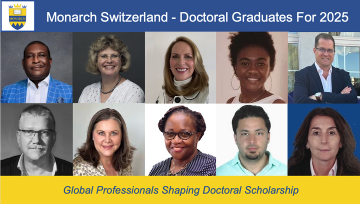 Monarch Switzerland proudly announces the doctoral graduates of 2025, a cohort distinguished by both the depth of professional experience they bring to doctoral study and their academic accomplishments. These graduates represent senior practitioners from global institutions, multinational corporations, public sector organizations, financial services, international development agencies, and executive leadership roles. Their successful completion of doctoral programs reflects Monarch Switzerland’s position as an academic home for experienced professionals seeking to formalize, deepen, and extend their expertise through rigorous doctoral research.